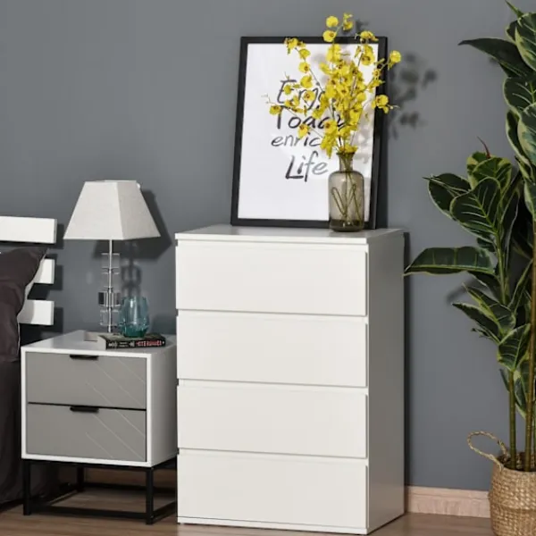 - ✔ Fyra lådor: förvaringsutrymme för kläder med mera. Metallskenor för smidig öppning och stängning av lådorna