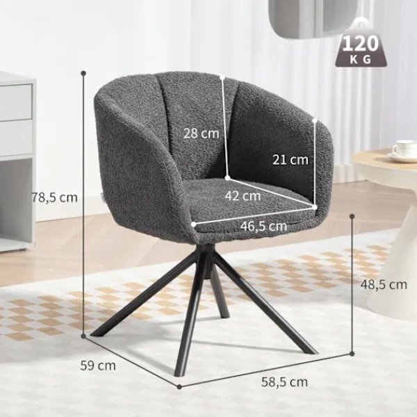 Upplev ultimat komfort med denna snurrande loungefåtölj som erbjuder 360-graders rotation för sömlös rörelse. Dess mjuka sits vaggar dig med stil, medan robusta metallben skyddar golv från repor.