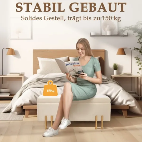 Denna eleganta förvaringsbänk är tillverkad med en träram av hög kvalitet och har en bas i galvaniserad metall, vilket säkerställer hållbarhet och en elegant design. Det dolda förvaringsfacket är tillräckligt rymligt för att rymma böcker, kläder, filtar, skor, leksaker och andra nödvändigheter, vilket gör det till en idealisk lösning för att rensa ut ditt utrymme. Bänkens mångsidiga design gör att den passar sömlöst in i olika miljöer, oavsett om det är din entré, vardagsrum, källare eller sovrum.