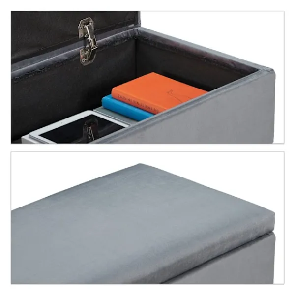 Den eleganta sammetsbänken erbjuder elegant förvaring med lyxig sammetsklädsel, som förstärker alla rums estetik samtidigt som den ger praktiska sittplatser och förvaringslösningar.