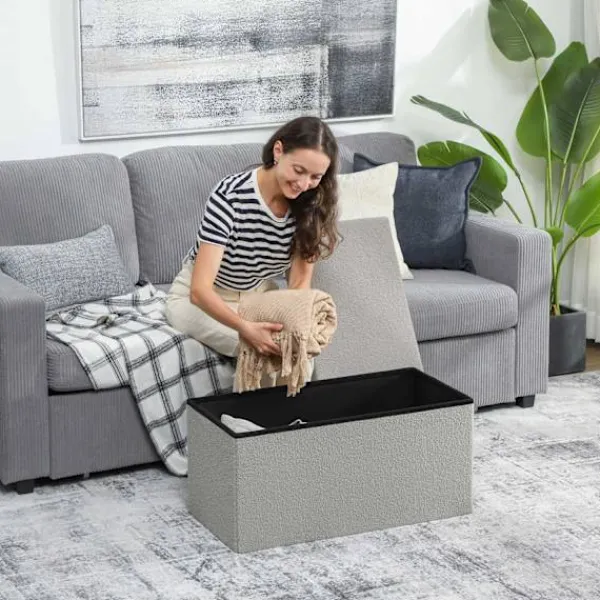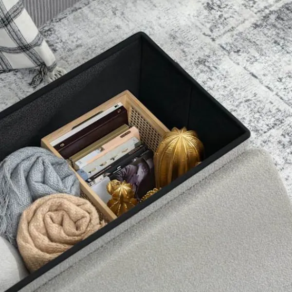 Denna förvaringspall med dold förvaring erbjuder en snygg lösning för att organisera ditt hem. Med 84 liter dolt utrymme förvarar den filtar, kuddar och mer, samtidigt som den även fungerar som en bekväm sittplats eller fotstöd.