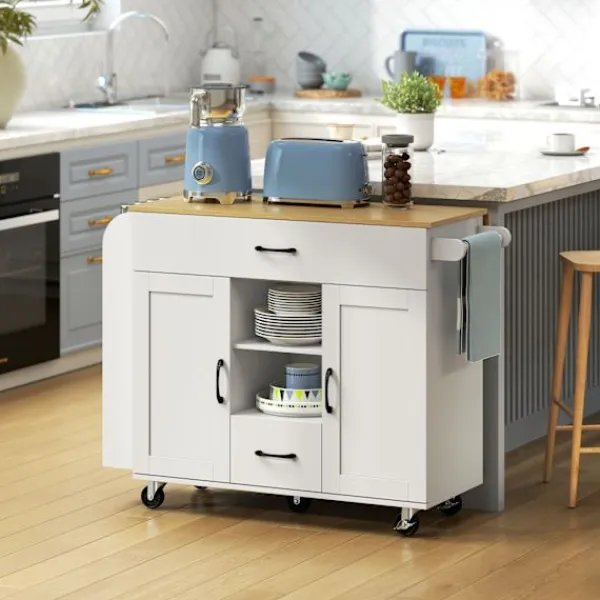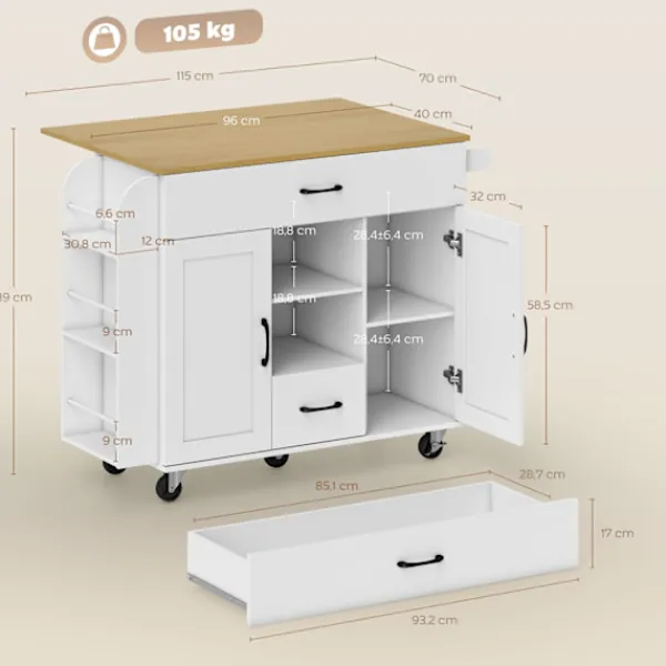 Förvandla ditt röriga kök med en mångsidig köksvagn som erbjuder gott om förvaring och en hopfällbar bänkskiva för extra arbetsyta. Öka effektiviteten och flexibiliteten med denna mobila lösning.