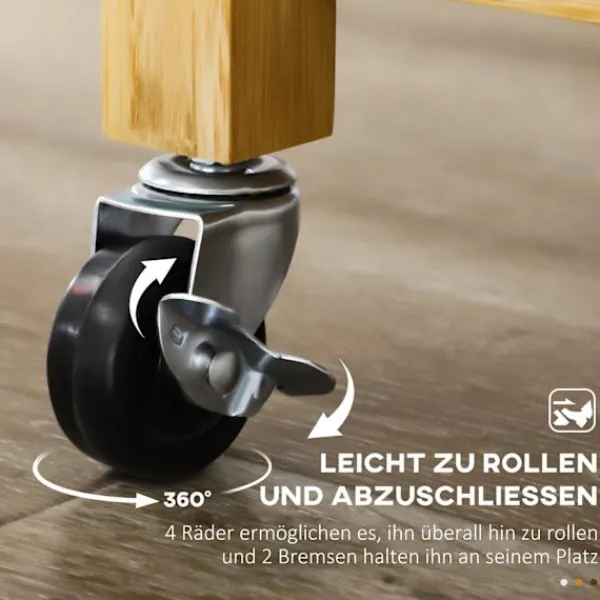 - ✔ 4 mjukt rullande hjul för enkel rörlighet, varav 2 har broms
