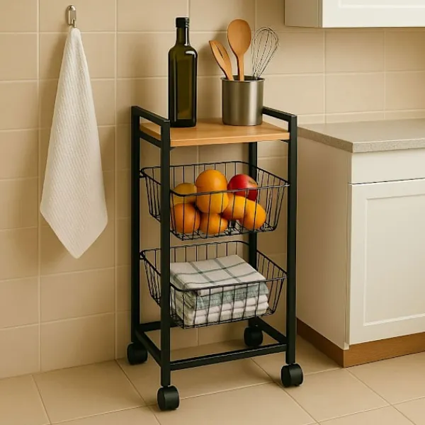 Oavsett om du förvarar kryddor, kosmetika eller kontorsmaterial, anpassar det här mobila stället till dina behov. Dess eleganta design och funktionella material gör den till ett måste i alla hem. Missa inte att förenkla din dagliga rutin – lägg till denna praktiska del i din varukorg idag!