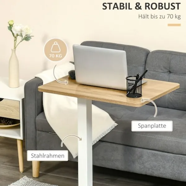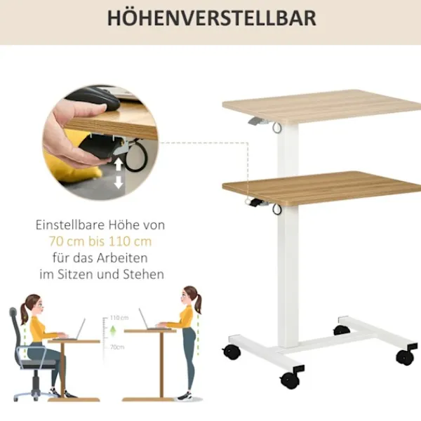 Med detta laptopbord från kan du arbeta var och när du vill. Tack vare dess 360 graders hjul kan den flyttas var som helst. Det kompakta formatet gör den idealisk för användning i små utrymmen. Tack vare dess höjdjustering kan du själv bestämma om du föredrar att arbeta stående eller sittande. En upphöjd kant ser till att dina pennor och mobiltelefon stannar på plats även när bordsskivan lutar. Detta laptopbord är en smart lösning för mobilt arbete.
