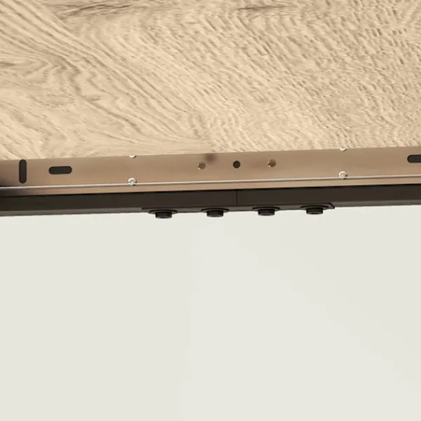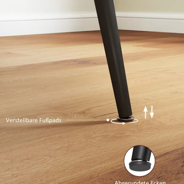Säkerhet är en prioritet med de rundade hörnen, som hjälper till att minimera risken för stötar och blåmärken, vilket gör det till ett familjevänligt val. De robusta stålbenen är utrustade med justerbara fotkuddar, vilket ger en stabil grund på olika golvtyper, från lövträ till matta.
