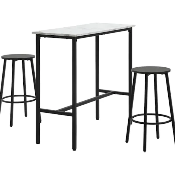 Med detta barset från kan du njuta av läckra måltider som ett par och dela värdefulla stunder. Köksbordet imponerar med en elegant pulverlackerad stålstomme och en fascinerande marmorlook. Både bordet och stolarna är utrustade med ett stilrent fotstöd så att du kan koppla av helt och hållet när du sitter. Blås nytt liv i rummets alla hörn med detta set genom att förvandla det till en mysig matplats.