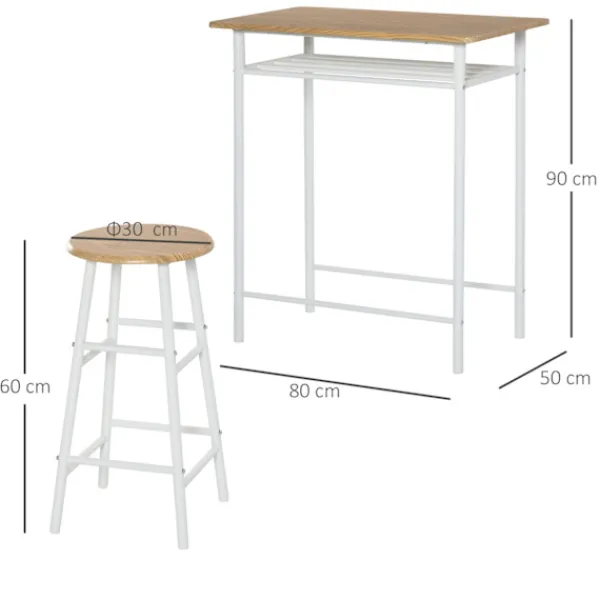 - ✔ Övergripande mått: 80W x 50D x 90H cm (bord), Ø30 x 60H cm (pall)