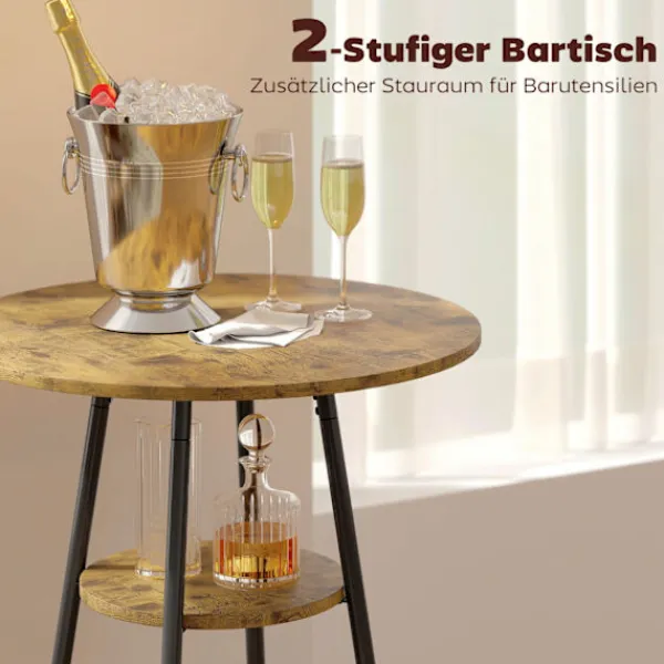 - Organisera dina nödvändigheter med ett barbord i två nivåer som ger extra förvaring.