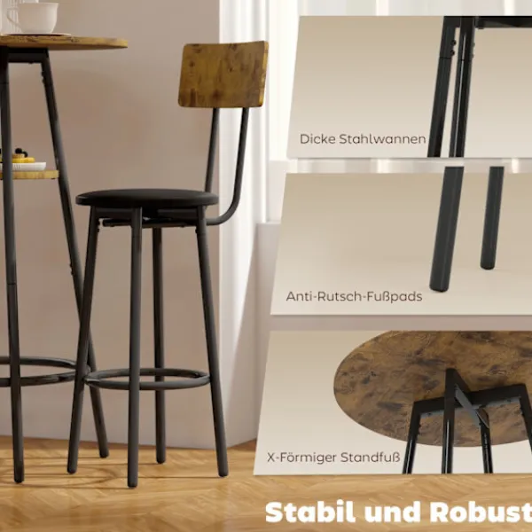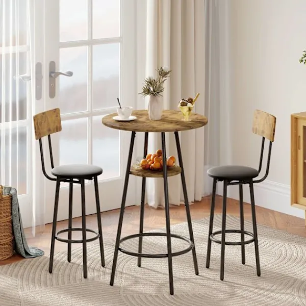 - Förbättra din matplats med ett barbordsset i tre delar som erbjuder rustik charm.