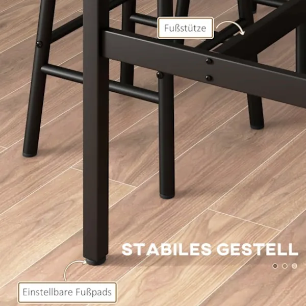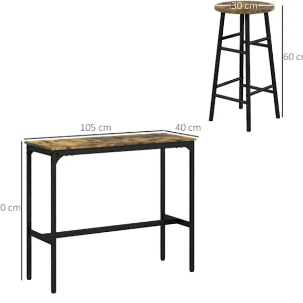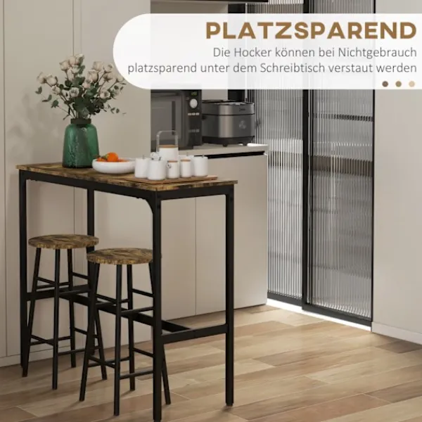Förvandla ett litet utrymme till en inbjudande matplats. Med barbordet dukat för 2 personer kan du skapa en mysig plats för att njuta av måltider tillsammans med din partner. Barbordet med barstolsset har en solid svart stålram i kombination med snygga träpaneler och ger din matsal eller bardekoration en rustik-industriell touch.