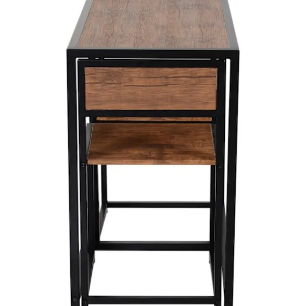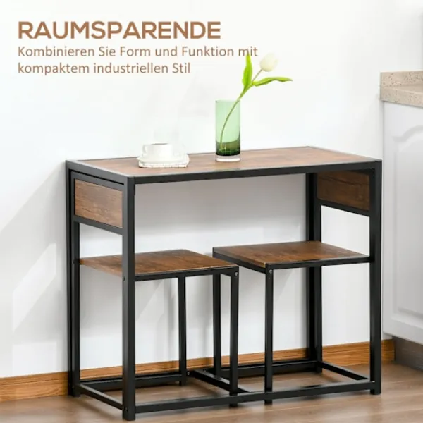 Med detta barbordsset från kan du luta dig tillbaka och sätta din mat och dryck i rätt ljus. Den galvaniserade stålramen med svart finish är stark och hållbar, idealisk för dagligt bruk i köket, uterummet och hemmet. De rödbruna MDF-panelerna har ett skyddande lager som skyddar dem från vatten och repor – perfekt för hektiska liv. Funktionellt och alltid stilrent – det här är det perfekta bordet för din matsal.