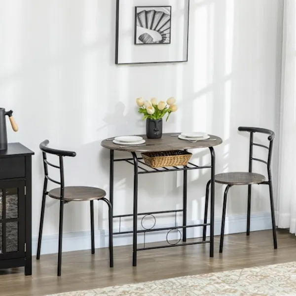 Förvandla ett litet rum till en inbjudande matsal. Med matstället i 3 delar kan du skapa en mysig plats att dela dagliga måltider med dina nära och kära. Matbordssetet består av ett ovalt bord, som passar bra in i rummet. Hyllan i botten av bordet ger extra förvaringsutrymme. Göm stolarna, få helt enkelt ditt rum att se större ut och skapa mer sittutrymme på en liten yta.