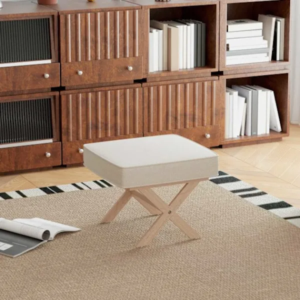 - ✔ Material: linneimitation (100 % polyester), skum, gummiträ