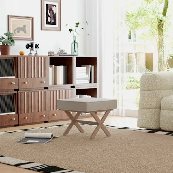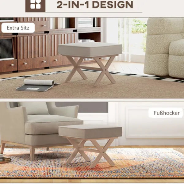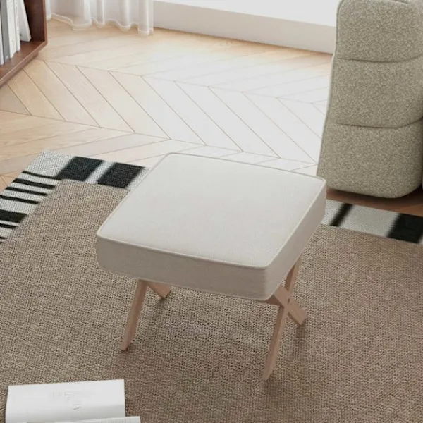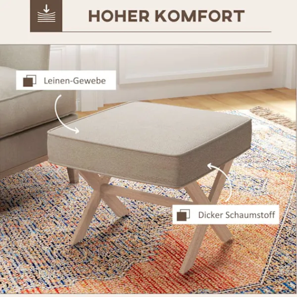 Pallen är perfekt som extra säte eller bekvämt fotstöd. Pallen imponerar med sitt mjuka, luftgenomsläppliga tyg i en linnelook och tät skumvaddering. De snygga benen på ottomanen gjorda av gummiträ med halkskydd säkerställer också stabilitet och ett stilrent utseende.