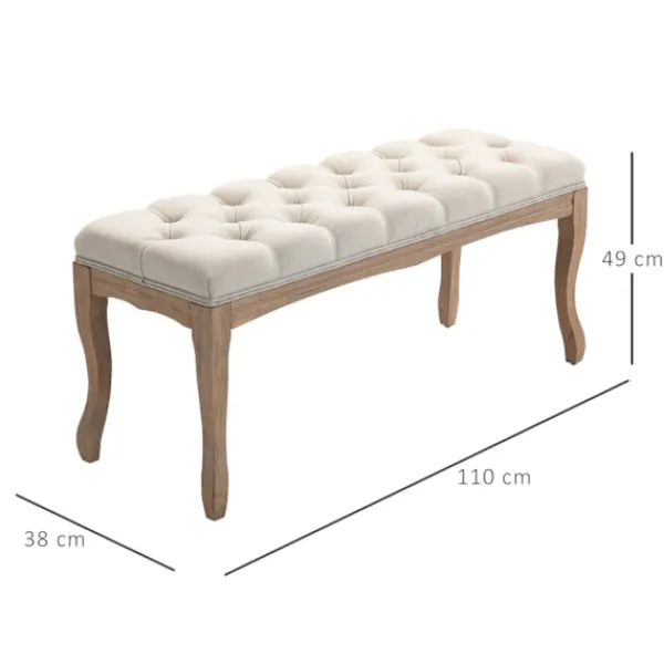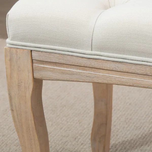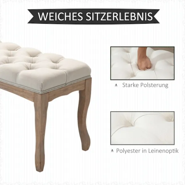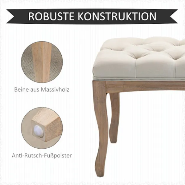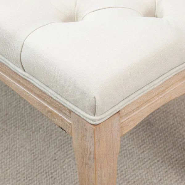 Skapa en omedelbar och bekväm kontaktpunkt i ditt hem med denna vackra stoppade bänk från. Ovandeln i linnelook och de klassiskt böjda benen ger denna ottoman en touch av vintageglamour, medan knappslåen ger extra elegans. Bänken kan användas som matsalsbänk, fönstersits, sängpall och skobytarbänk. Unna dig något alldeles speciellt – välj denna tidlösa ottoman från.