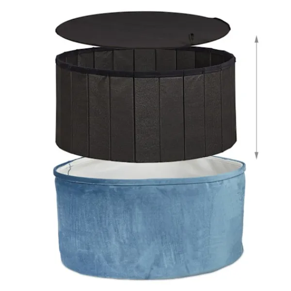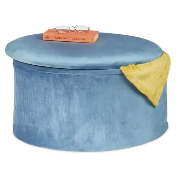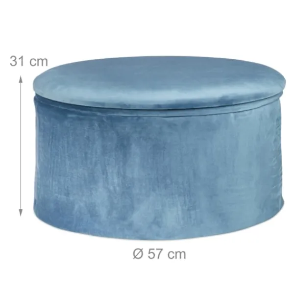 Det mjuka sammetsöverdraget i trendigt petrolblått gör denna runda stoppade pall till ett speciellt blickfång i vardagsrummet. Med sin dekorativa design passar pallen inte bara som en bekväm sittpall, utan även som en praktisk fotpall framför soffan. Tack vare det avtagbara locket erbjuder sidopallen också förvaringsutrymme för filtar, tidningar och andra vardagliga föremål.