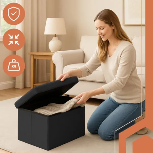 Förbättra ditt hem med denna multifunktionella sittpuff som erbjuder både sittplatser och förvaring. Dess vikbara design och robusta konstruktion gör den till ett praktiskt tillskott i alla utrymmen. Ta tag i din idag och njut av blandningen av stil och användbarhet.