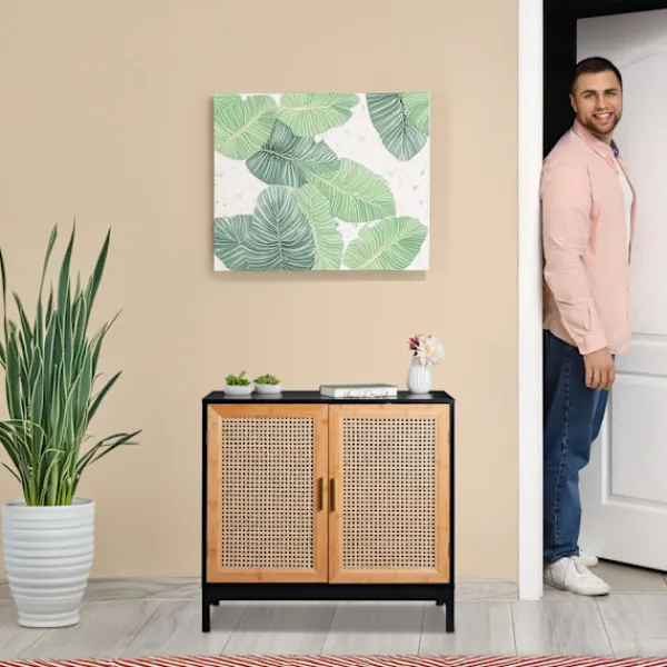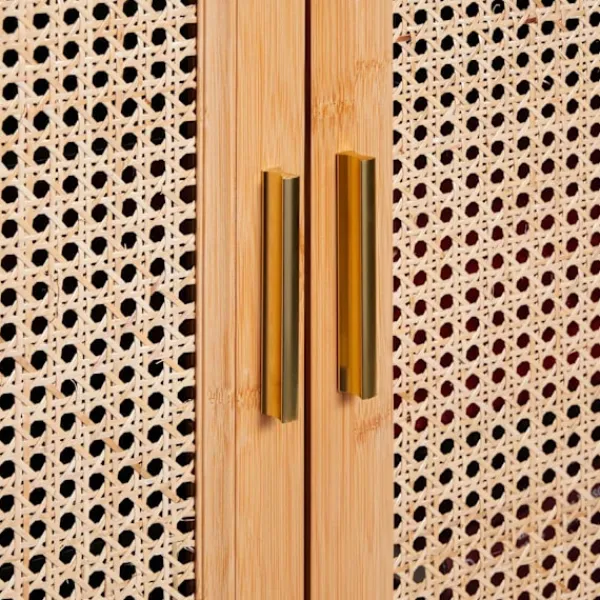 Den inre hyllan är idealisk för att visa upp dina favoritdekorationer, vilket gör detta skåp till en central punkt i ditt vardagsrum eller hall. Med sin retromöbelstil fungerar det som ett elegant tillskott som enkelt kan integreras i olika boendekoncept. Oavsett om du vill skapa en lugn och avkopplande atmosfär eller en livlig och energisk miljö, kommer detta rottingskåp att bidra till att förverkliga din vision.