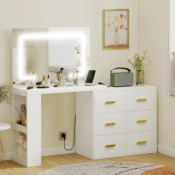 Sminkbordet med justerbar LED-spegel förvandlar kaotiska morgnar till en fridfull ritual, som erbjuder optimal belysning för sminkapplicering och en inbyggd laddningsstation för enhetens beredskap.