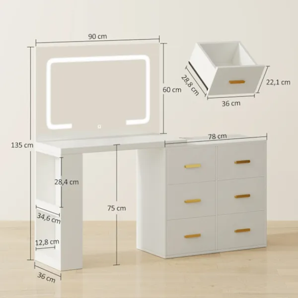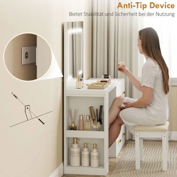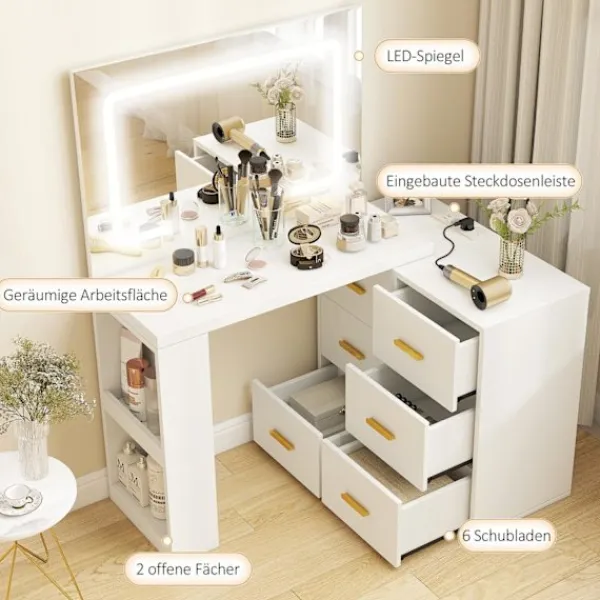 Förbättra din dagliga rutin med detta mångsidiga sminkbord, designat för bekvämlighet och stil. Dess gott om förvaring och smarta funktioner gör den till ett måste för alla skönhetsentusiaster. Ta din i dag.