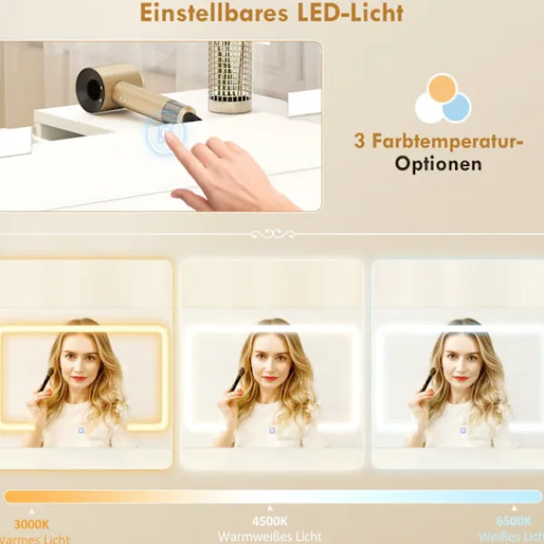 - Njut av optimal belysning med en LED-spegel med tre färgtemperaturer.