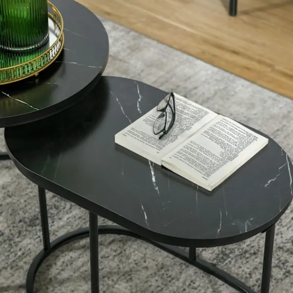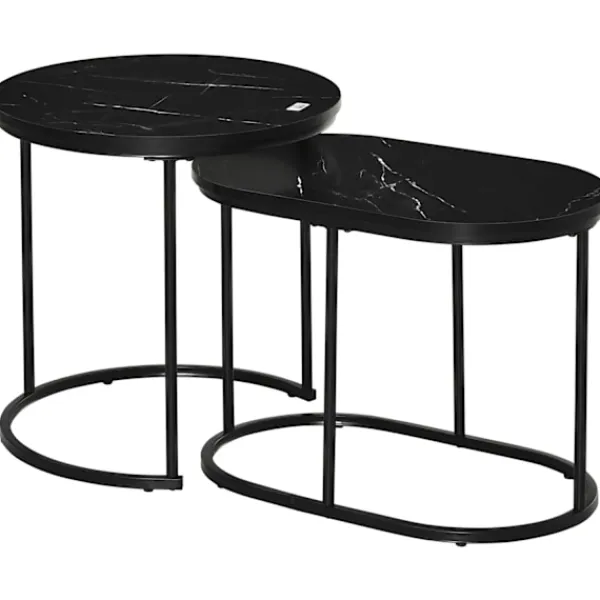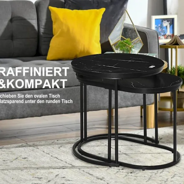 Detta set med 2 sidobord kommer i en trendig industriell stil med bordsskivor i marmorlook. Oavsett om det är ett sidobord, ett sängbord eller ett hallbord – detta sidobord erbjuder gott om extra förvaringsutrymme för växter, böcker och mycket mer. Tack vare sin praktiska design kan sidoborden staplas ovanpå varandra och förvaras för att spara utrymme. Dessa sidobord kommer snabbt att bli ett blickfång i ditt hem.