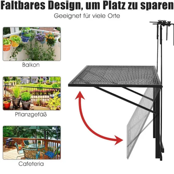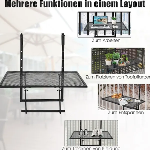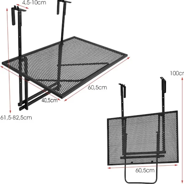 Förbättra din balkong eller uteplats med denna multifunktionella hängande hylla. Dess robusta järnkonstruktion och justerbara funktioner gör den idealisk för små utrymmen. Hämta din idag och njut av extra bekvämlighet.