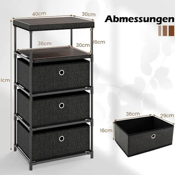 - Passar olika utrymmen med 3 vikbara tyglådor och en extra hylla för organiserad förvaring.