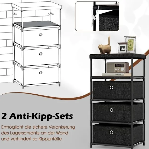 - Inkluderar: 3 tyglådor, 1 hylla, 2 tippskyddssatser