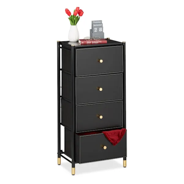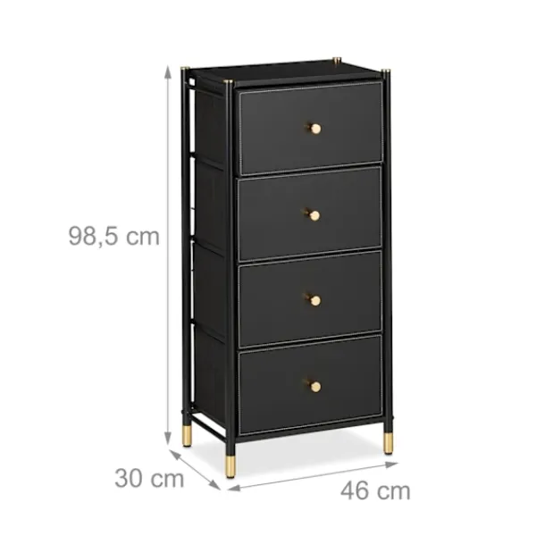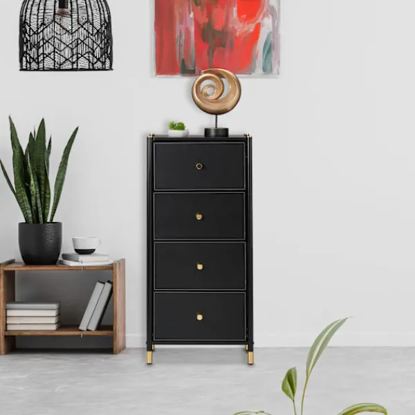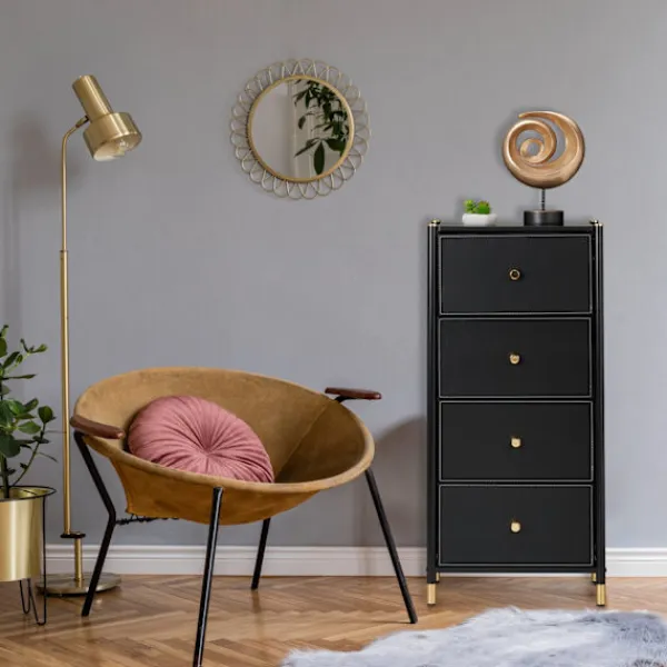 Den eleganta sovrumskrin erbjuder gott om förvaring med fyra rymliga lådor, perfekt för att organisera kläder, böcker eller accessoarer samtidigt som den förstärker alla rum med sin eleganta design.