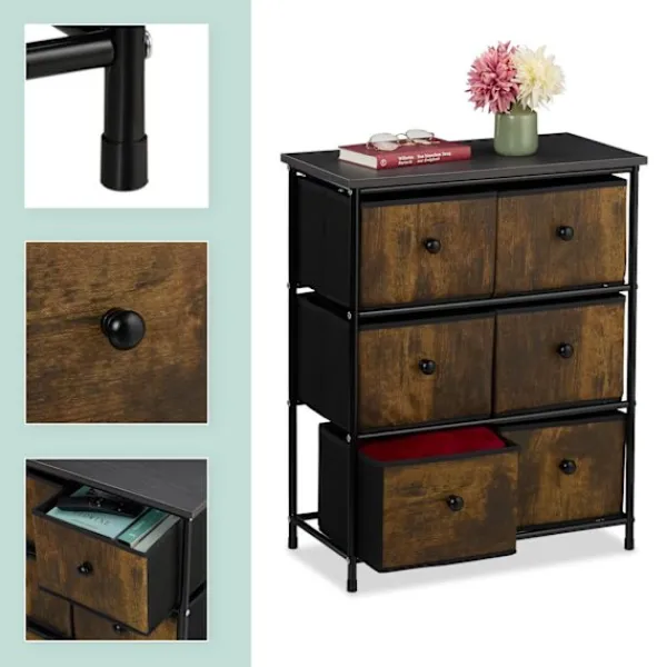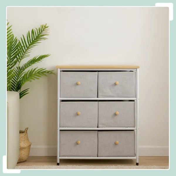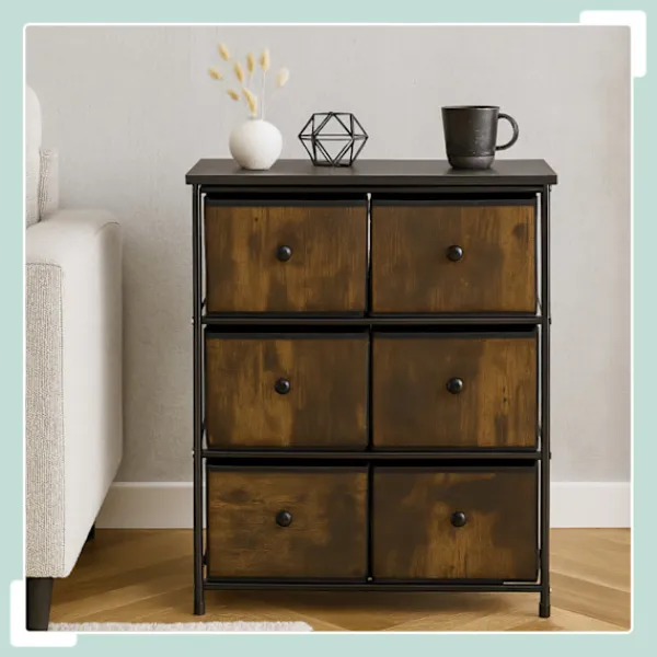 Denna mångsidiga byrå med 6 lådor ger gott om förvaring för sovrum, hallar och vardagsrum, vilket förbättrar organisation och stil med sin moderna design.