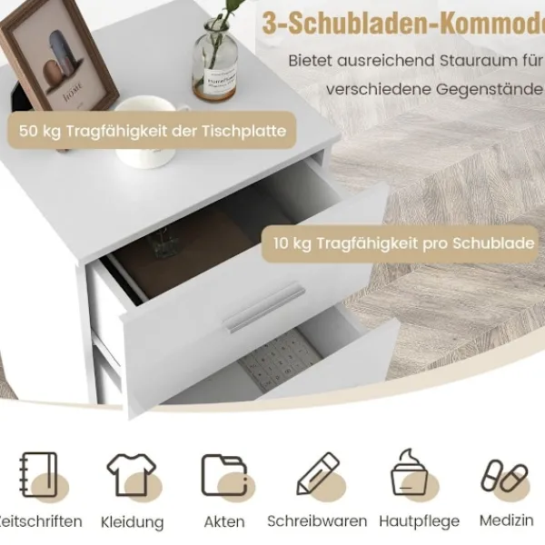 Vårt arkivskåp är utformat för att maximera effektiviteten på din arbetsyta. De tre lådorna ger tillräckligt med utrymme för att organisera kontorsmaterial och lagra viktiga dokument. Den övre ytan är perfekt för att placera din skrivare, vilket säkerställer att den förblir stabil och lättillgänglig. Detta gör den till ett idealiskt val för hemmakontor, skolor och företagsmiljöer.