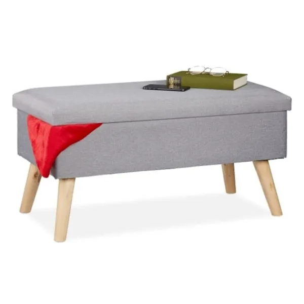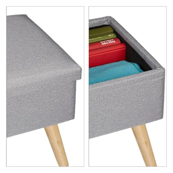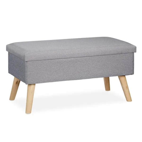 Den stoppade förvaringsbänken erbjuder en elegant sittplatslösning med dold förvaring, perfekt för att rensa sovrum, hallar eller vardagsrum. Dess linneliknande polyesterfinish ger en touch av elegans.