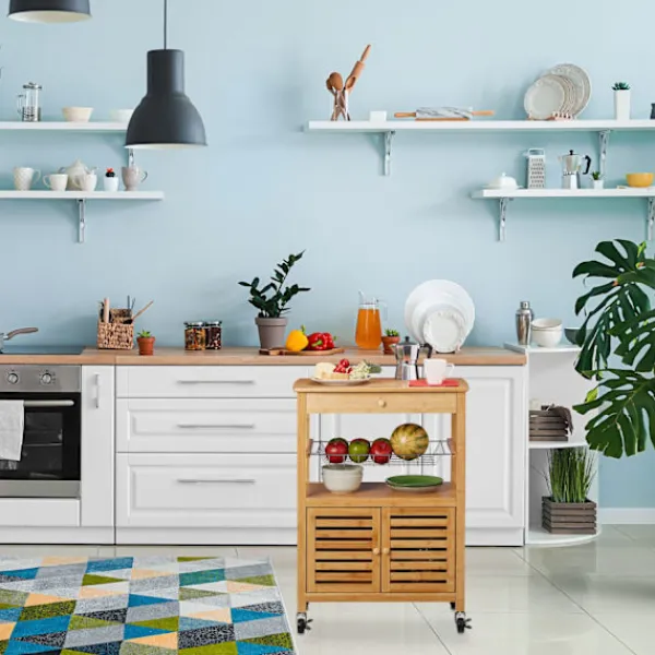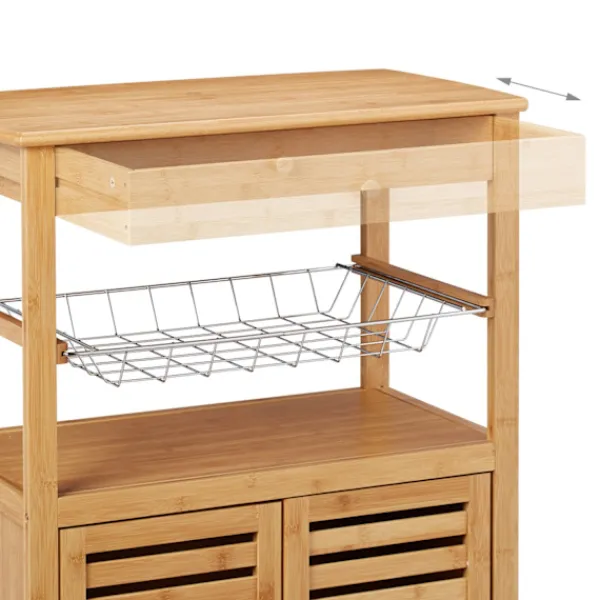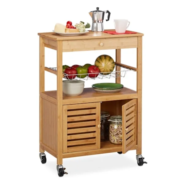 Den naturliga köksvagnen erbjuder mångsidig förvaring med en elegant design, perfekt för att organisera dina nödvändiga kökssaker. Lättmanövrerad med 360° svängbara hjul, den anpassar sig efter dina utrymmesbehov.
