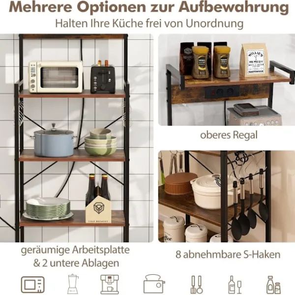 Förvandla ditt utrymme med vårt mångsidiga bakarställ med ett inbyggt eluttag för bekväm användning av apparaten. Denna 4-vånings kökshylla erbjuder gott om förvaring för redskap, apparater och mer.