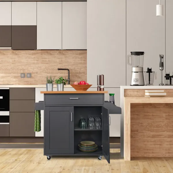 Förbättra ditt köks effektivitet med vår mångsidiga köksvagn, perfekt för att maximera utrymmet i kompakta kök. Denna vagn erbjuder gott om förvaring med ett rymligt skåp och organiserade lådor.