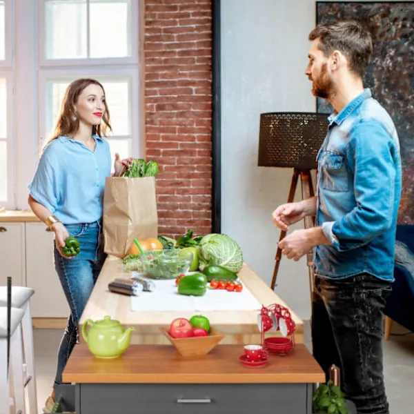 - Håll kryddor och handdukar till hands med integrerade ställ.