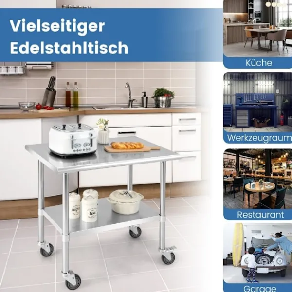 Denna mångsidiga arbetsbänk i rostfritt stål är mer än bara en förvaringsenhet; den kan också användas för mathantering tack vare sin säkra bordsskiva i rostfritt stål. Oavsett om det är i köket, verktygsrummet, restaurangen eller garaget, tjänar denna arbetsbänk flera ändamål. Alla monteringsdelar är tydligt märkta, och den medföljande skiftnyckeln och ställskruven betyder att inga extra verktyg behövs för installationen. Den rundade kanten på bordsskivan garanterar användarsäkerhet, vilket gör den till ett pålitligt val för alla miljöer.