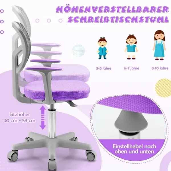 Den justerbara barnstolen har ett Y-format svankstöd och en bekväm sits, vilket främjar en optimal sittställning. Det ergonomiska ryggstödet ser till att ditt barns ryggrad får bra stöd, vilket minskar risken för ryggbelastning. Armstöden ger extra stöd, vilket gör det lättare för ditt barn att behålla en bra hållning när han sitter.