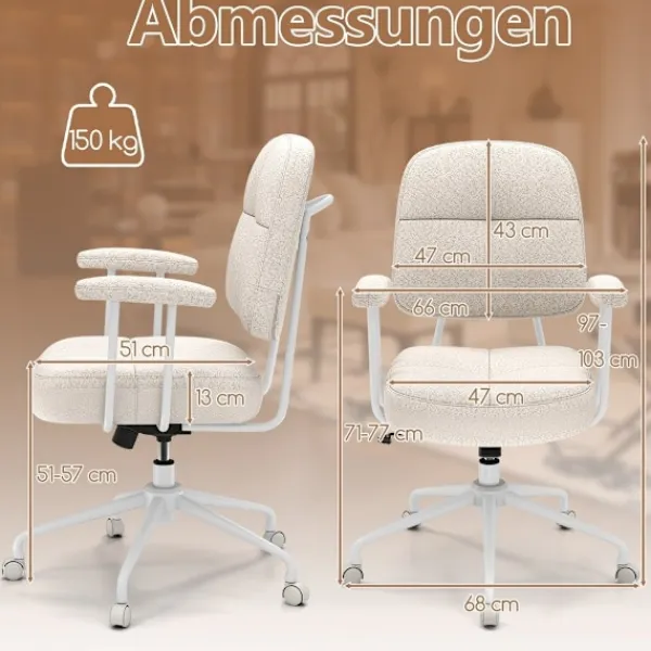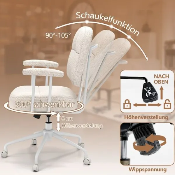 Ergonomisk kontorsstol förbättrar arbetsytans komfort med 13 cm tjock skumstoppning och hudvänligt chenilletyg. Njut av vintage charm och enkel rengöring, plus justerbart, vridbart ryggstöd för personliga sittplatser.