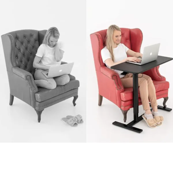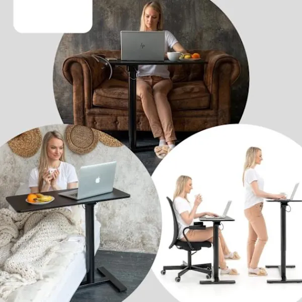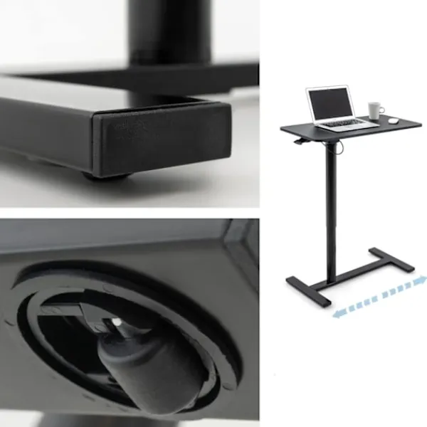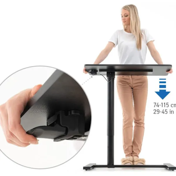 Spenderar du mycket tid framför din laptop? Då är det oerhört viktigt att tänka på din arbetsställning! Med detta justerbara laptopbord kan du välja mellan att sitta ner eller stå upp medan du arbetar framför datorn. Bordet kan justeras i höjd mellan 74–115 centimeter och är tillverkat av svart MDF.
