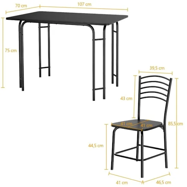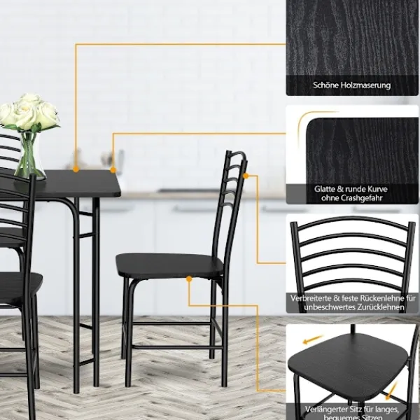 Kämpar du med begränsat matutrymme? Vårt matset i 5 delar är den perfekta lösningen för att förvandla varje måltid till en härlig upplevelse. Det här setet innehåller ett rymligt bord och fyra bekväma stolar, designade för att passa sömlöst in i vilken matplats, frukostvrå eller kök som helst. Tillverkad av slitstark MDF-skiva och en pulverlackerad metallram, utlovar detta matset många år av pålitlig användning. Den unika designen med runda hörn, bordsben med dubbla stång och tvärram under sätet förbättrar stabiliteten och användarupplevelsen.
