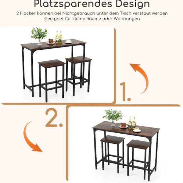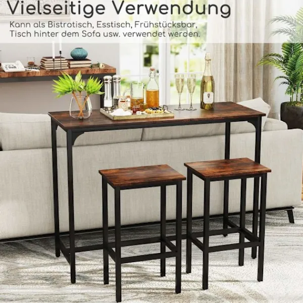Förbättra din hemmabar eller matplats med detta 3-delade barbordsset, med ett rustikt bord i mothöjd och två barstolar, perfekt för intima måltider eller mysiga sammankomster.