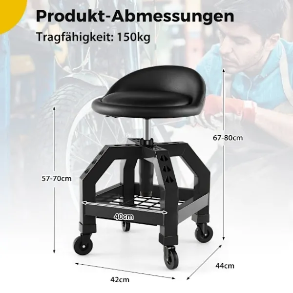 Vår mekaniska pall är byggd med en robust struktur och har en metallram av hög kvalitet med en viktkapacitet på 150 kg för att stödja din kropp. Dessutom är den tillverkad av premiummetallmaterial och belagd med en vattentät finish för långvarig hållbarhet. Förbättra din hållning och minska tröttheten med den ergonomiska sätesdesignen, vilket säkerställer att du upplever oöverträffad komfort under längre reparationsuppgifter.