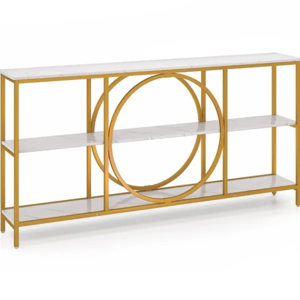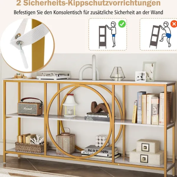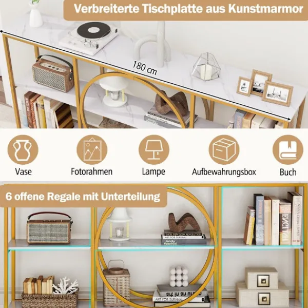 Förvandla ditt vardagsrum med vårt eleganta konsolbord, designat för att förstärka din inredning med tidlös lyx. Konsolbordet har en elegant metallram och en mångsidig skiva av fuskträ ådring eller fuskmarmor.