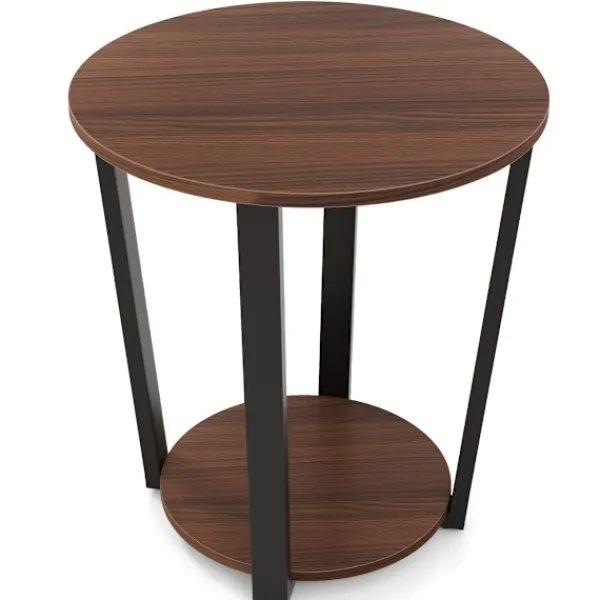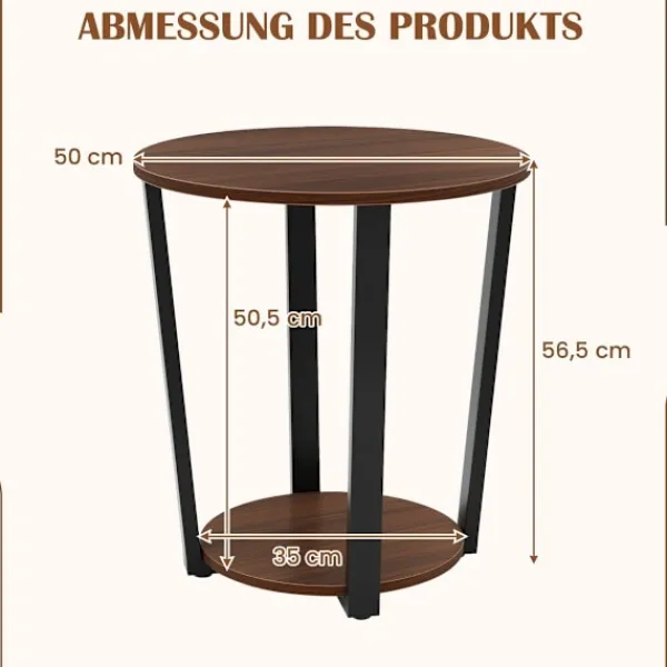 Det runda sidobordet är designat med praktiska tankar. Dess kompakta storlek gör den perfekt för trånga hörn eller små utrymmen, men den ger tillräckligt med yta för dina nödvändigheter. Den eleganta designen kombinerar träliknande texturer med en industriell metallfinish, vilket gör den perfekt för olika inredningsteman, från modernt till rustikt. Bordets stabila konstruktion, med X-formade stödben, lovar långvarig användning, medan de justerbara fotkuddarna förhindrar vinkling på ojämna golv.