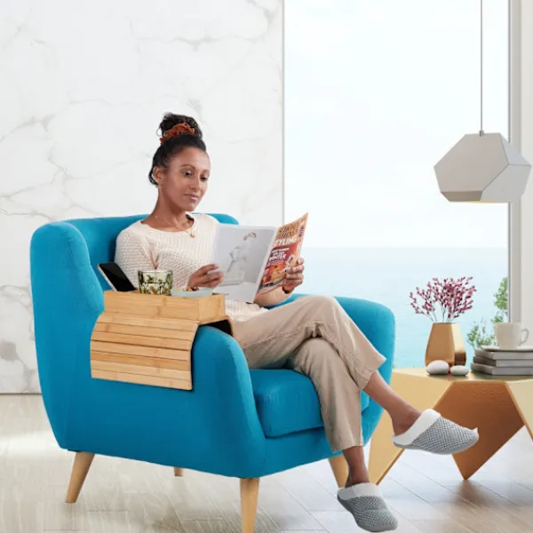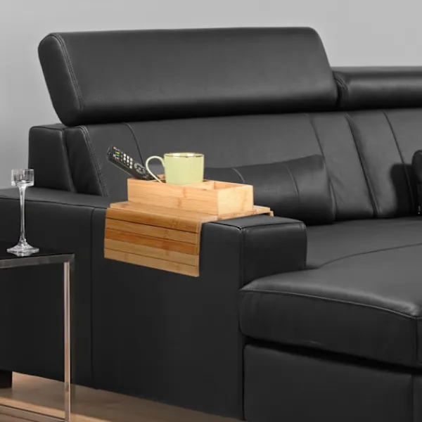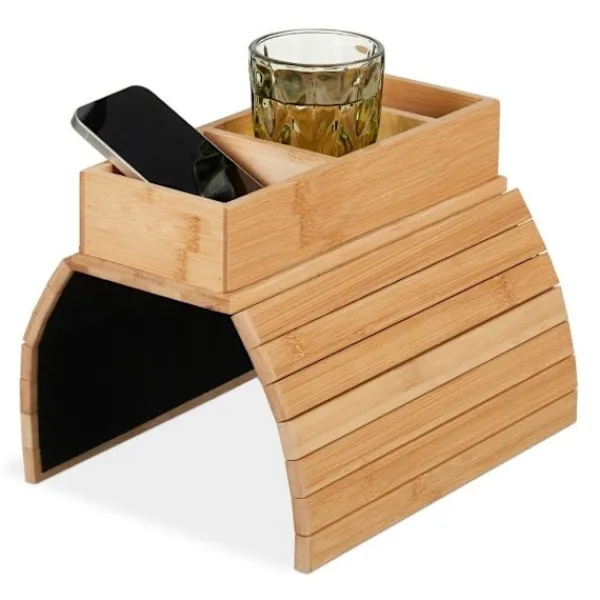 Förbättra ditt vardagsrum med en soffbricka med en halkfri undersida som erbjuder stabilitet och organisation för drinkar, snacks och fjärrkontroller. Denna bambubricka anpassar sig till alla soffarmstöd eller ryggstöd.