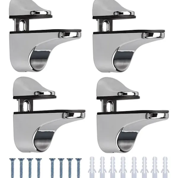 Sats med 4 justerbara hyllfästen, var och en mäter 55x50x24mm, för glas 3 till 20mm tjockt, skruvar ingår.