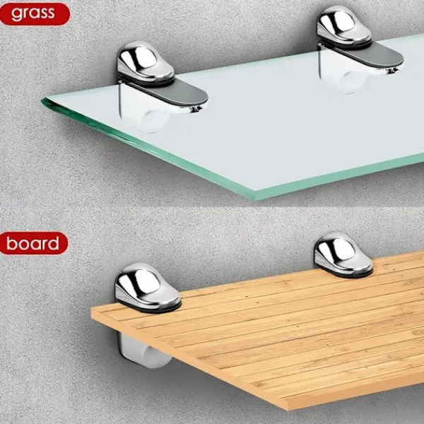 Designad för glas- och träpaneler för bokhyllor, utställningsstånd och badrumshyllor.